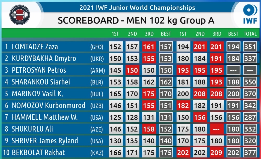 İdmançımız toplam 332 (152+180) kq nəticə ilə 7-ci yeri tutub.