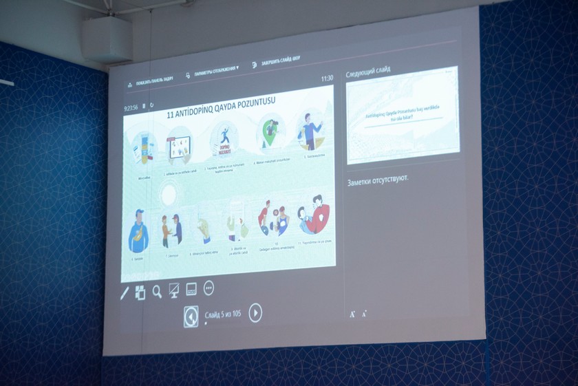 Əvvəlcə antidopinq qaydaları ilə bağlı yazılı ön sorğu aparılıb, sonra geniş məlumatlandırmaya keçilib. İştirakçılara dopinqdən istifadənin törətdiyi fəsadlar və bunun hüquqi nəticələri, Antidopinq Qayda Pozuntuları, dopinq nəzarəti prosesi, Terapevtik İstifadə üçün İstisnalar, qadağan edilmiş maddələrin siyahısı, onun tərtib olunma meyarları, yarış vaxtı və ondan kənarda test götürülmə qaydaları, idmançıların məkan məlumatları, ADAMS sistemi və digər vacib məqamlar barədə geniş məlumat verilib. Qeyd olunanlar eyni zamanda proyektor vasitəsilə əyani şəkildə göstərilib. Seminar interaktiv keçirilib, iştirakçılar onları maraqlandıran sualları verərək cavab alıb, maraqlı müzakirələr aparılıb.