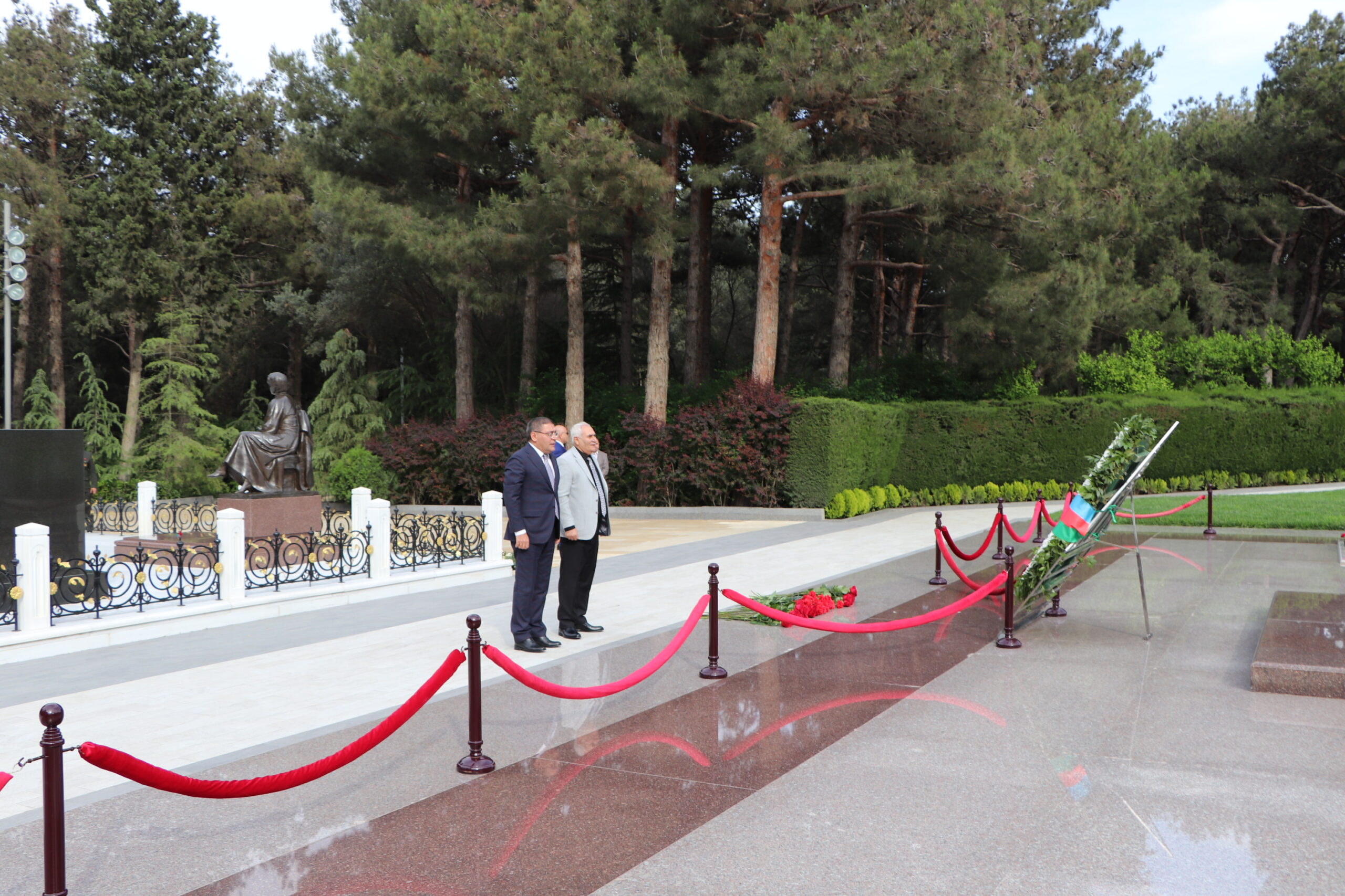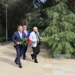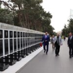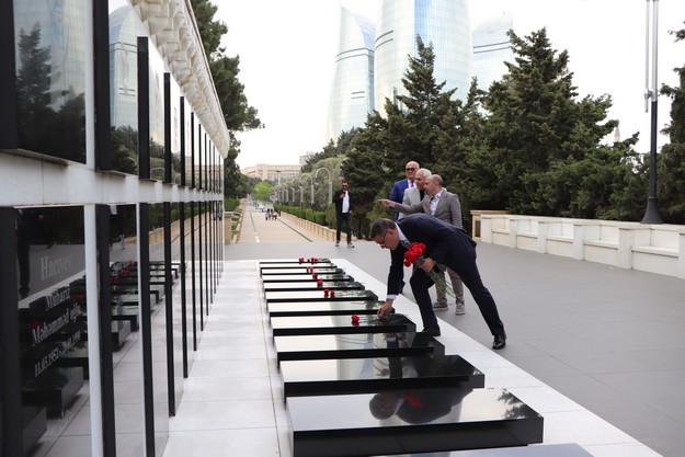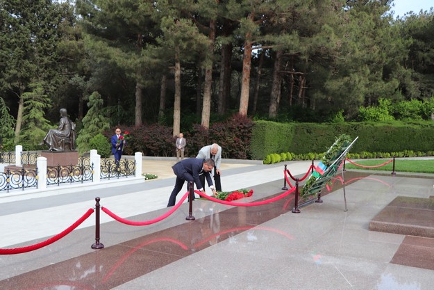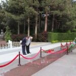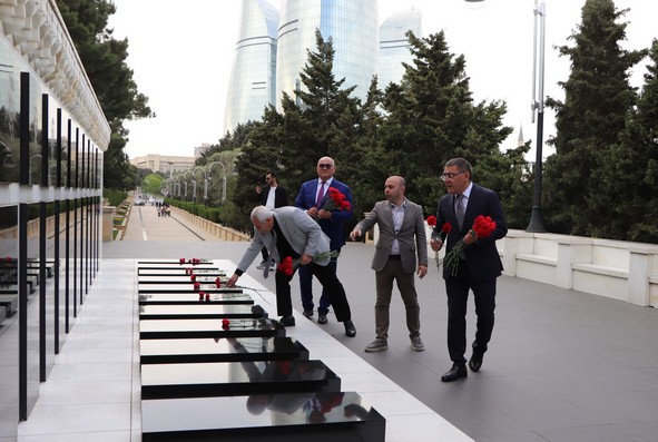 Sonra onlar Şəhidlər Xiyabanına gedərək Vətənimizin azadlığı, müstəqilliyi uğrunda şəhid olmuş vətəndaşlarımızın məzarları üzərinə gül dəstələri qoyublar.