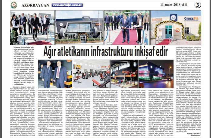The official publication of the Milli Mejlis of Azerbaijan Republic, “Azerbaijan” newspaper, prepared an extensive article about the work done by the Azerbaijan Weightlifting Federation in the direction of infrastructure development. The state newspaper praised our activities and noted that the steps taken are a great foundation for the future. We present you this article: