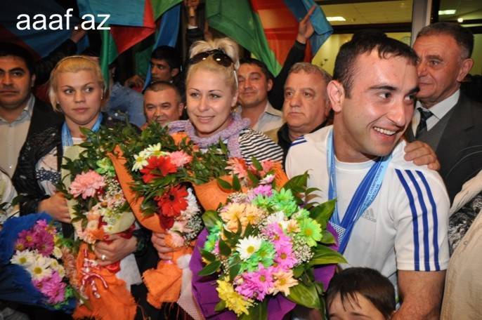 Dünən axşam saatlarında ağır atletika üzrə milli komandamız vətənə döndü. Avropa çempionatında böyük uğur qazanaraq bayrağımızı zirvələrə yüksəldən idmançılar böyük təmtəraqla qarşılandı. Heydər Əliyev adına Beynəlxalq Hava Limanına təşrif buyuran onlarla idmansevər atletlərimizi alqışlayaraq, bağrına basdılar. Əllərində Azərbaycan bayraqları olan azarkeşlərlə yanaşı, ölkənin bütün televiziya kanalları və başqa KİV orqanlarının nümayəndələri də bu mərasimə qatılaraq onu işıqlandırdı. Hər bir idmançımıza böyük diqqət göstərildi, Azərbaycan havaları çalındı, oraya toplanalar rəqs edib bu bayramı lazımınca qeyd etdilər.