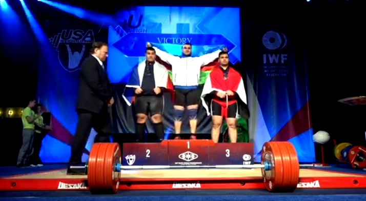 Rahman Kazimov, the winner of European Youth Championship, was last to board the platform in the men’s +102kg bodyweight category.