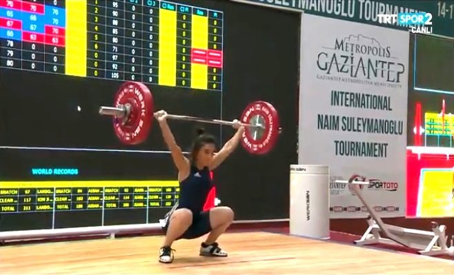 On November 14-17, an international tournament devoted to the memory of three-times Olympic champion Naim Suleymanoglu will be organized in Gaziantep, Turkey. In this event, which has license character to Tokyo 2020 Olympic Games, approximately 80 athletes from more than 20 states will take part in. The members of Azerbaijan national team are also amidst them. Under the guidance of head coach Asif Mammadov, Sabina Azimova (55kg), Boyanka Kostova (59kg), Fugan Aliyev (81kg) and Tarmenkhan Babayev (96kg) will board the platform. Today, one of them-Sabina Azimova tested her power. She competed in 55kg bodyweight category and earned the 4th with a total of 173kg (75+98).