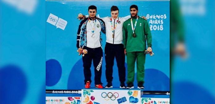 At the men’s 85 kg bodyweight category of YOG, Tarmenkhan Babayev won silver medal with a total of 316kg (142+174).