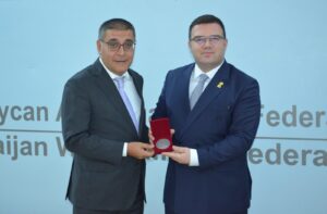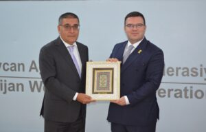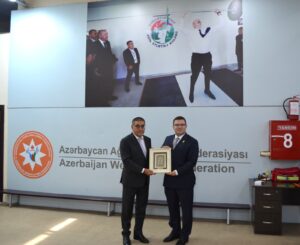 Kamran Nəbizadə və Firdovsi Umudov Avropa Ağırlıqqaldırma Federasiyasının prezidenti Astrit Hasani ilə görüşüb