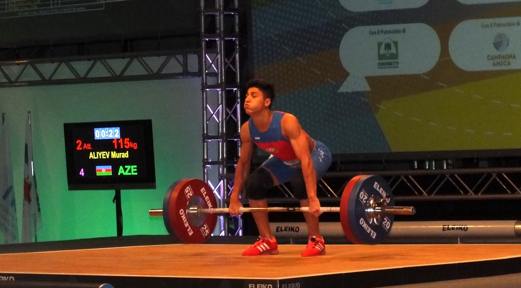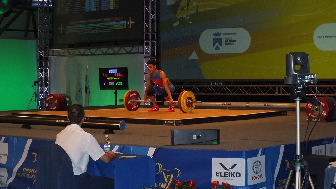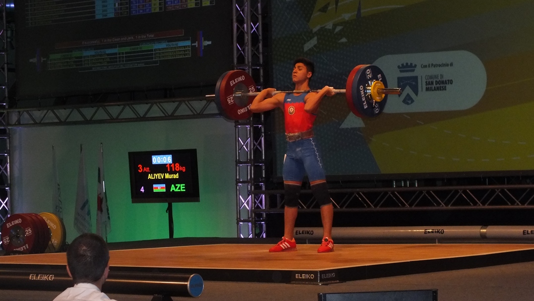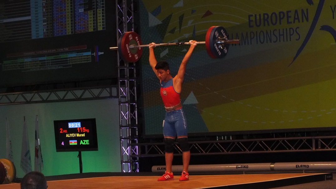 Murad Əliyev isə fəxri kürsüyə qalxıb. Birdən qaldırma hərəkətində 100 kq nəticə ilə bütün rəqiblərini üstələyən atletimiz qızıl medala layiq görülüb. Təkanla qaldırma hərəkətində də uğurlu çıxışını davam etdirən Murad, 118 kq-ı başı üzərinə qaldıraraq bu hərəkətdə də qalib olub. Toplam 218 kq (100+118) nəticə ilə Avropanın ən yaxşısı adını qazanan Murad Əliyev fəxri kürsünün ən yüksək pilləsinə qalxıb.