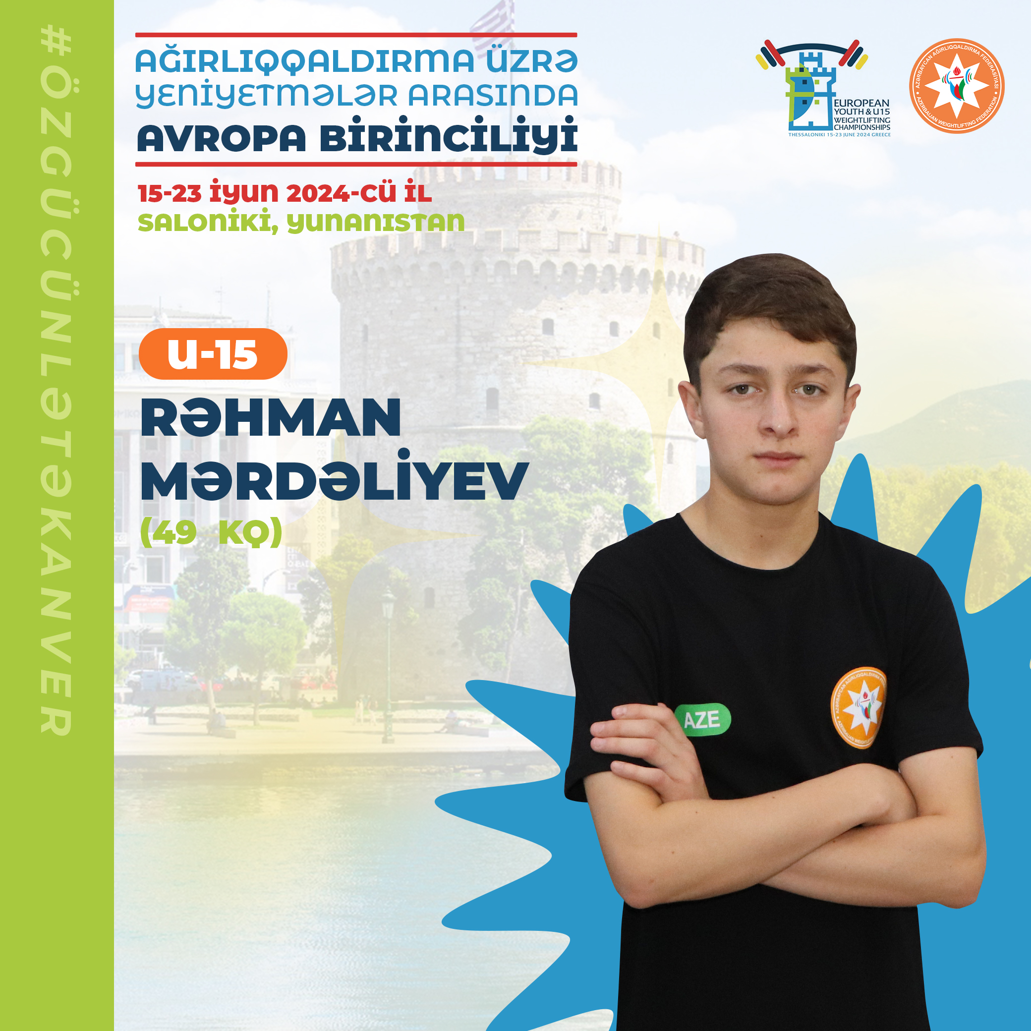 15-24 iyun tarixlərində Yunanıstanın Saloniki şəhərində keçirilən 15 və 17 yaşlı yeniyetmələr arasında ağırlıqqaldırma üzrə Avropa birinciliyinə start verilib. 38 ölkədən 415 (198 qız + 217 oğlan) idmançının iştirak etdiyi yarışa Azərbaycan yığması da qatılıb.