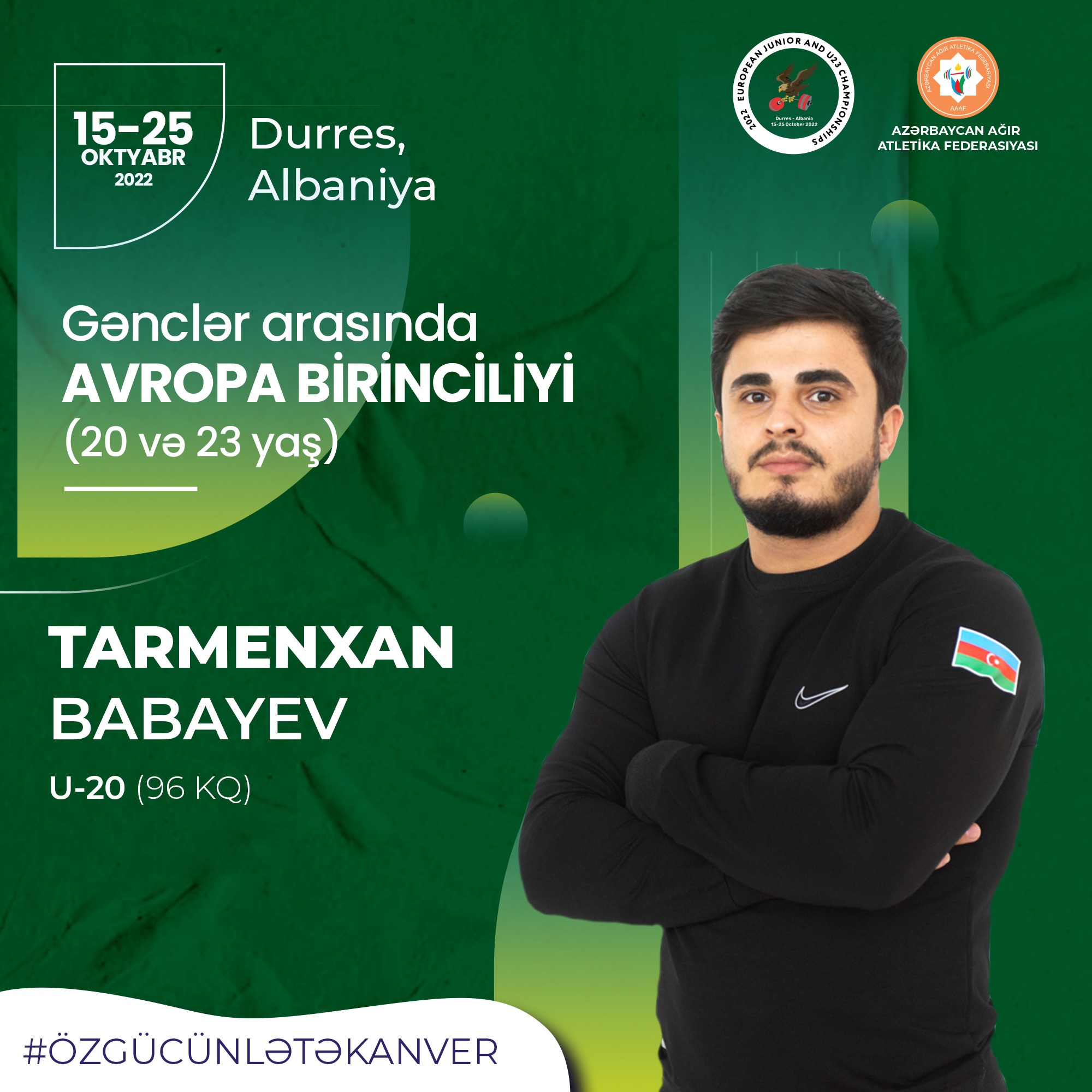 15-25 oktyabr tarixlərində Albaniyanın Dürres şəhərində keçirilən yaşı 20 və 23-ə qədər olan gənclər arasında ağır atletika üzrə Avropa birinciliyi davam edir. Yarışda 37 ölkədən 416 atlet (194 qadın və 222 kişi) iştirak edəcək.
