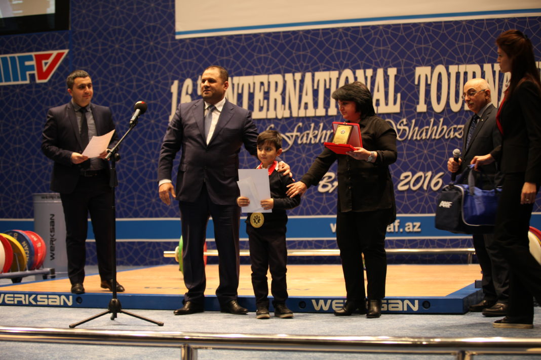 Sonda bir neçə xatirə plaketləri və hədiyyələri təqdim edildi. Onlardan ən yaddaqalanı Fəxrəddin Şahbazovun nəvəsi, babasının xatirəsinə adı verilmiş balaca Fəxrəddinlə bağlı oldu. Belə ki, Azərbaycan ağır atletika yığmasının baş məşqçisi Tofiq Heydərov ona ağır atletika milli komandasının forması və bu yarışın ilk qızıl medalını təqdim etdi. Mütəxəssis Fəxrəddinə babasının yolunu davam etdirməsini arzulayaraq, ömrünün sonuna qədər ağır atletika ailəsinin üzvü olacağını bildirdi.