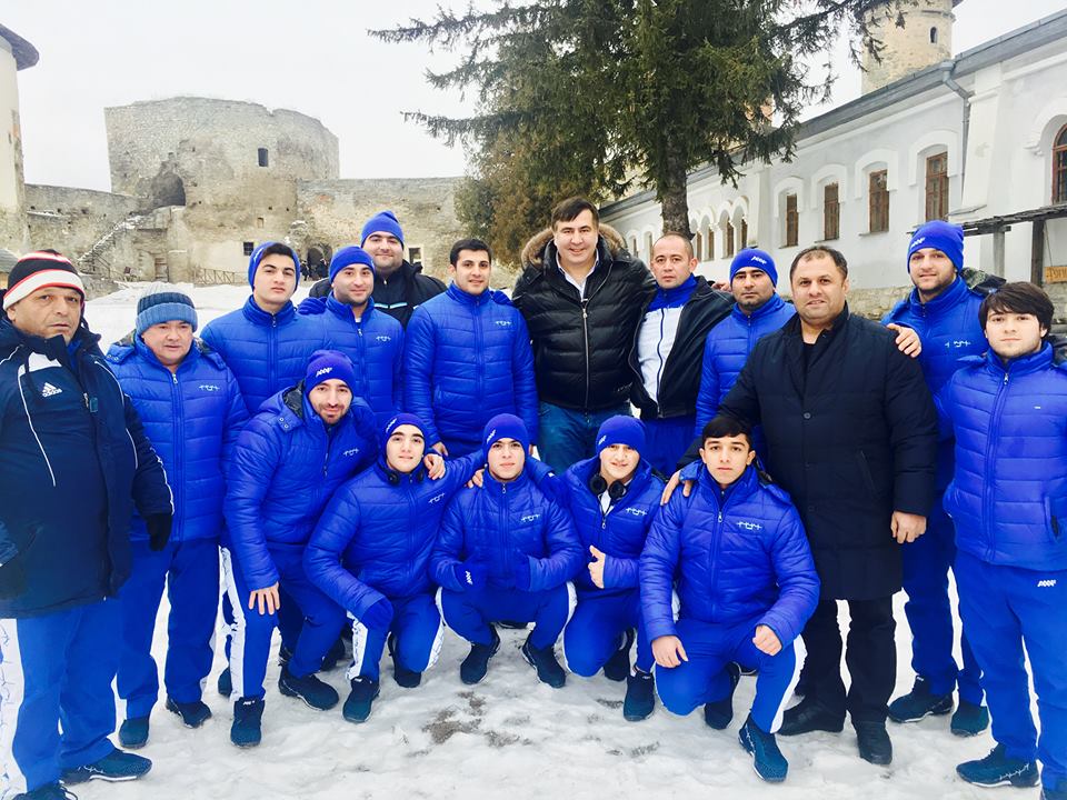Xmelnitski vilayətinin Kamenets-Podolsk şəhərində toplanışda olan millimiz məşqlərlə yanaşı, aktiv istirahətə də imkan tapır. Məşqçilər heyəti ilə birlikdə gəzintiyə çıxan atletlərimiz şəhərin maraqlı və tarixi yerlərinə baş çəkiblər. Gəzinti zamanı yığmamız sürpriz qonaqla da qarşılaşıb. Gürcüstanın sabiq prezidenti, Ukraynanın Odessa vilayətinin sabiq qubernatoru Mixail Saakaşvili ilə üz-üzə gələn komandamız onunla xatirə şəkli də çəkdirib.