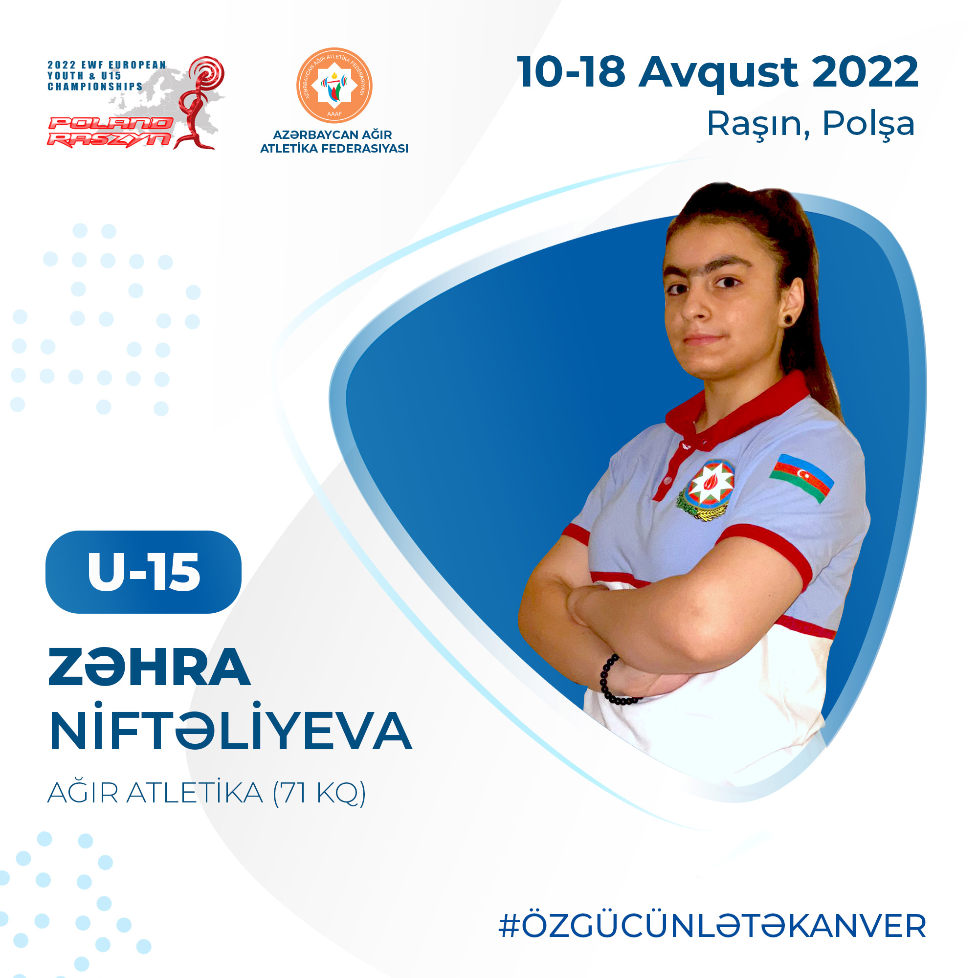 10-18 avqust tarixlərində Polşanın Raşin şəhərində keçirilən 15 və 17 yaşlı yeniyetmələr arasında ağır atletika üzrə Avropa birinciliyinə start verilib. Yarışda 36 ölkədən 331 nəfər (160 qız + 171 oğlan) atlet iştirak edir. Onların arasında Azərbaycan yığma komandasının üzvləri də var.